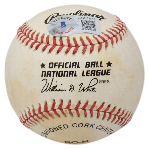 Featured is a Hank Aaron Milwaukee Braves signed official National League baseball. This baseball was hand signed by Hank Aaron and authenticated by Beckett authentication services. Included with the baseball is a Beckett hologram and letter of authenticity. This item would make a great addition to any sports memorabilia collection!. SPECIFICATIONS Autographed By: Hank Aaron Team: Milwaukee Braves Sport: Baseball Authentication: Beckett Grading Services