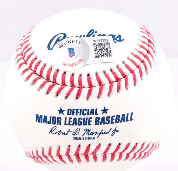 Hideki Matsui Autographed Rawlings OML Baseball- Beckett W Hologram *Blue This is a Hideki Matsui hand autographed Rawlings Official Major League Baseball. This item has a Beckett Witnessed Authentication, which comes with a numbered hologram and a QR code for verification. You can view this item on the Beckett website and it shows when and where the item was signed. It was signed either at a public autograph appearance or a private signing. This is a stock photo of the item. Although you may not receive this exact item, the item you receive is virtually identical, brand new, and in great shape.