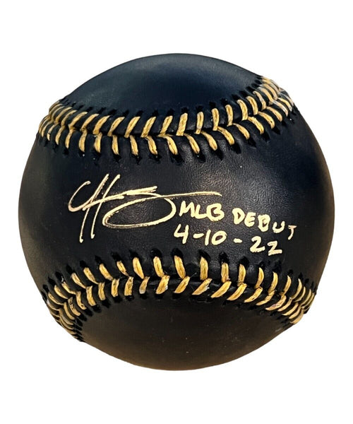 Hunter Greene Autographed ROMLB Black Baseball Reds MLB Debut FAN 41130 The number in the listing title is just an inventory sku for our records and is not the authentication number. This is the exact item that you will receive so please see pictures for condition. This is a black baseball that was personally autographed by Hunter Greene with MLB Debut inscription. This item includes a Fanatics Authentic hologram and a certificate of authenticity from Denver Autographs.