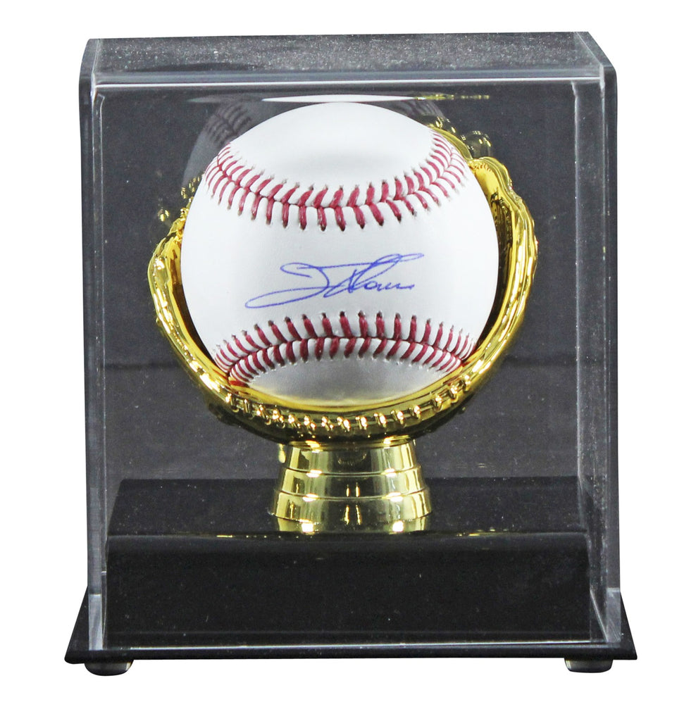 This Autographed Manfred Oml Baseball W/ Gold Glove Acrylic Display Case has been Personally Signed by Jim Thome of the Cleveland Indians. This item is 100% Authentic to include a hologram by Beckett Authentication Services. This item will come with an affixed Beckett Authentication Services (BAS) authentication sticker, which includes a scannable QR code to verify authenticity. Please note that Beckett no longer provides serial-numbered COA cards, and the attached BAS sticker will serve as the complete authentication for this item. This is a BAS Witnessed Protection Program item which means a Beckett Authentication Service representative was present when this item was being signed. We conducted an autograph signing with Jim Thome where multiples of the same item were signed. While the photographs are representative of this item, the size, placement and strength of the signature may vary. Each item is hand signed, therefore, each autograph is unique. This item can be verified through BAS Witnessed.