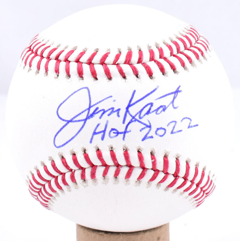 Jim Kaat Autographed Rawlings OML Baseball w/ HOF - Beckett W Hologram *Blue This is a hand autographed Baseball of Jim Kaat. Inscribed HOF 2022. This is a Rawlings Official Game Ball Major League Baseball. This item has a Beckett Witness Authentication, which comes with a Beckett numbered hologram and a QR code for verification. You can view this item on the Beckett website and it shows when and where the item was signed. It was signed either at a public autograph appearance or a private signing. This is a stock photo of the item. Although you may not receive this exact item, the item you receive is virtually identical and brand new in great shape.