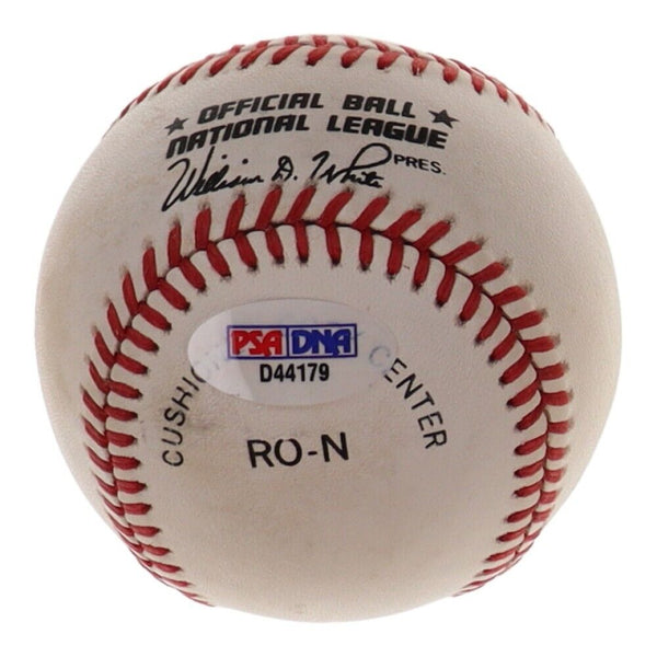 Rawlings Official National League Baseball has been hand-signed by Johnny Vander Meer ONLY PERSON EVER, WITH "BACK TO BACK NO HITTERS JUNE 11 & JUNE 15, 1938" (Died 1997, Cincinnati Reds). Please note, the baseball is naturally toned.The autograph includes an official PSA/DNA hologram for authenticity purposes.Authentication: PSA Hologram