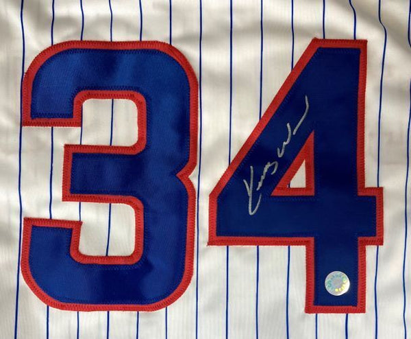Featured is a Kerry Wood signed custom baseball jersey. This jersey has been hand signed by Wood and comes with the Schwartz Sports hologram. This jersey has professionally sewn letters and numbers and is size XL. This jersey has no team tags or emblems and is intended as a sports collectible. This jersey would make a great addition to any sports collection! SPECIFICATIONS Autographed By: Kerry Wood Team: Chicago Cubs Sport: Baseball Authentication: PSA/DNA Authentication Services