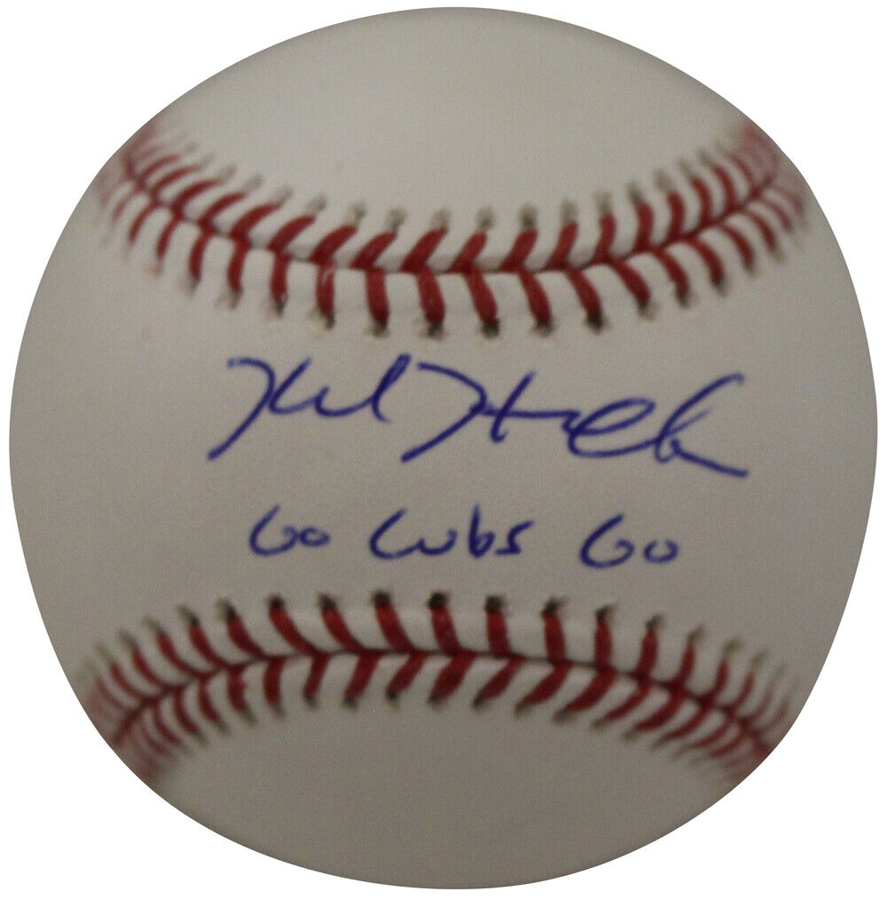 Kyle Hendricks Autographed OML Baseball Chicago Cubs Go Cubs Go FAN 36112 The number in the listing title is just an inventory sku for our records and is not the authentication number. This is the exact item that you will receive so please see pictures for condition. Includes a Fanatics authentic hologram and a certificate of authenticity from Denver Autographs.