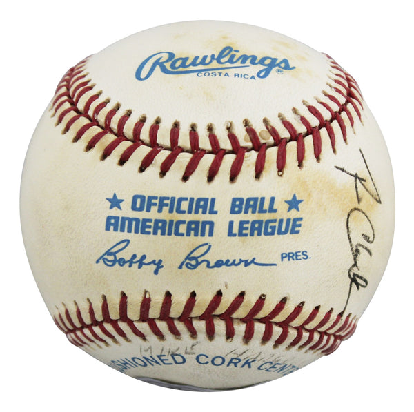 This Autographed Bobby Brown OAL Baseball has been Personally Signed by Mike Hargrove & Ron Clark. This item is 100% Authentic to include a hologram by Beckett Authentication Services. This item will come with an affixed Beckett Authentication Services (BAS) authentication sticker, which includes a scannable QR code to verify authenticity. Please note that Beckett no longer provides serial-numbered COA cards, and the attached BAS sticker will serve as the complete authentication for this item. The authenticity can be verified on Beckett Authentication Services website.