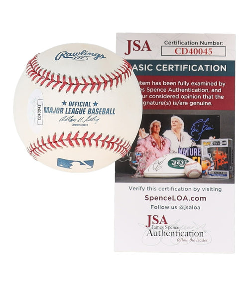 Rawlings Official Major League baseball. Hand-signed and inscribed by Milt Pappas (D. 2016, Chicago Cubs). Please note, the baseball is naturally toned.On September 2, 1972, at Wrigley Field, Pappas no-hit the San Diego Padres 8-0. He retired the first 26 batters and was one strike away from a perfect game with a 2-2 count on pinch-hitter Larry Stahl, but home-plate umpire Bruce Froemming called the next two pitches--both of which were close--balls. Pappas believed he had struck out Stahl, and even decades later in 2008, he continued to begrudge Froemming. Some 25 years later, a Chicago radio personality, during an interview with Pappas, got Froemming on the phone and the two argued on the air. Pappas also said in 2006 that he has seen videotape footage of that game on WGN and can see Froemming smirking immediately after the walk was issued; Froemming denied the charge. The autograph(s) includes an official James Spence Authentication (JSA) hologram and matching COA for authenticity purposes.Authentication: JSA COA