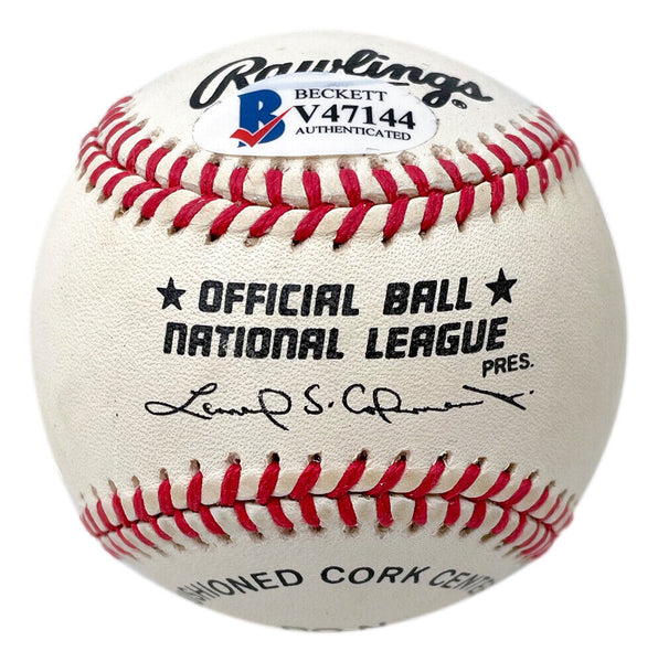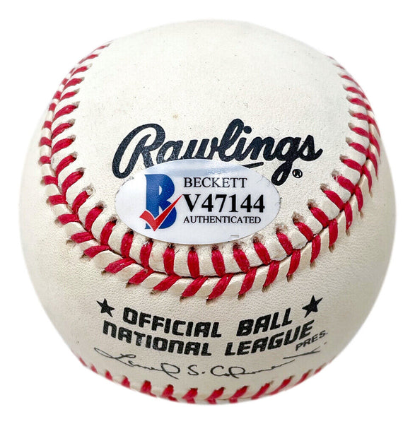 Featured is a Monte Irvin signed national league baseball. This baseball was hand signed by Monte Irvin and authenticated by Beckett authentication services. Included with the baseball is a Beckett hologram only. This item would make a great addition to any sports memorabilia collection! SPECIFICATIONS Autographed By: Monte Irvin Team: Sport: Baseball Authentication: Beckett Grading Services