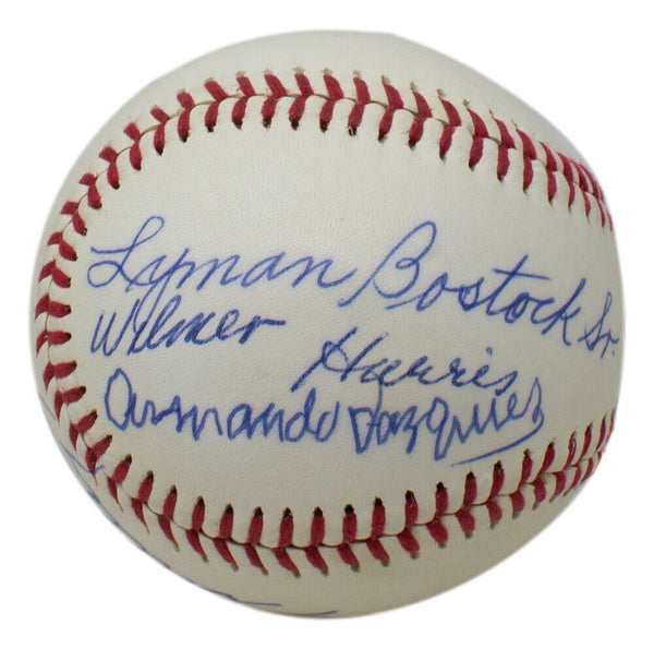 Featured is a multi signed Negro League legends baseball with 7 signatures. This baseball was hand signed by Wilmer Harris, Lyman Bostock Sr, Armando Vasquez, Jim Cohen, Nap Gulley, Gene Benson and Joe Barnes and authenticated by Beckett authentication services. Included with the baseball is Beckett hologram and letter of authenticity. This item would make a great addition to any sports memorabilia collection!. SPECIFICATIONS Autographed By: Wilmer Harris Team: Sport: Baseball Authentication: Beckett Grading Services