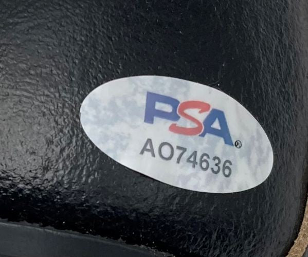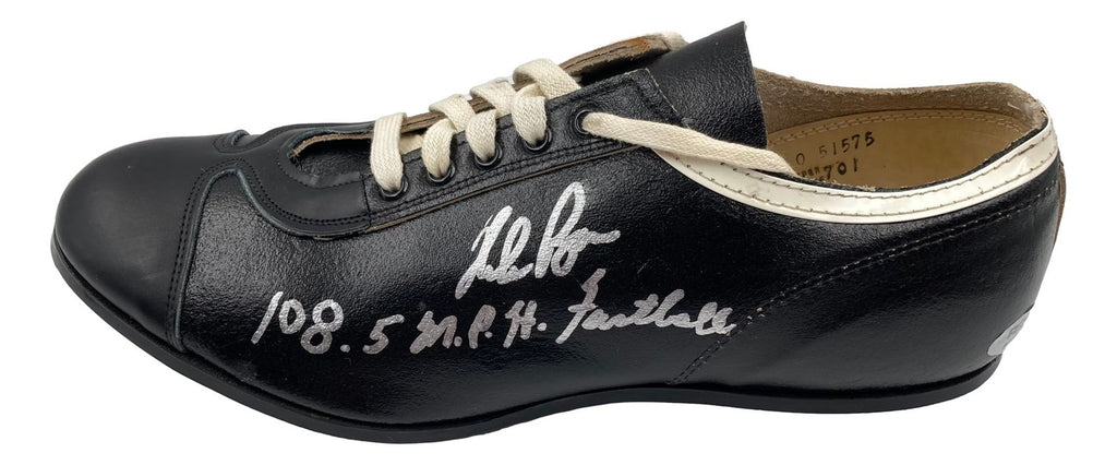 Featured is a Nolan Ryan signed vintage baseball cleat, inscribed "108.5 MPH Fastball". This cleat has been hand signed by Ryan and comes with the PSA/DNA hologram. This cleat is size 9 1/2. This cleat would make a great addition to any sports memorabilia collection! SPECIFICATIONS Autographed By: Nolan Ryan Team: Texas Rangers Sport: Baseball Authentication: PSA/DNA Authentication Services