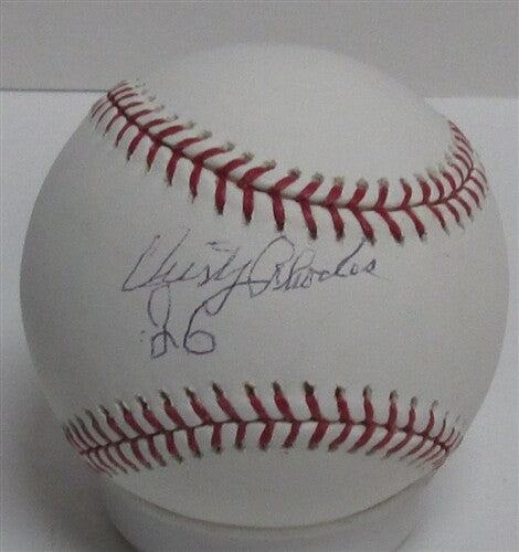 An official MLB baseball autographed by former New York/San Francisco Giants DUSTY RHODES (deceased). Signature is in blue ball point pen. This would make a great addition to any Giants collection! It is guaranteed to be 100% authentic and will include our company COA with matching serial numbered holograms.