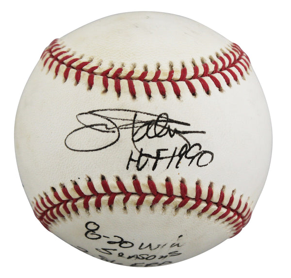 This Autographed Gene Budig Baseball with the inscription of "HOF 1990, 1973, 74, 75 A.L Cy Young, 268 Wins, 4 Gold Gloves, 8 20 Win Seasons, 2.86 ERA, 211 Complete Games, 3947 Innings" has been Personally Signed by Jim Palmer of the Baltimore Orioles. This item is 100% Authentic to include a hologram by Beckett Authentication Services. This item will come with an affixed Beckett Authentication Services (BAS) authentication sticker, which includes a scannable QR code to verify authenticity. Please note that Beckett no longer provides serial-numbered COA cards, and the attached BAS sticker will serve as the complete authentication for this item. The authenticity can be verified on Beckett Authentication Services website.