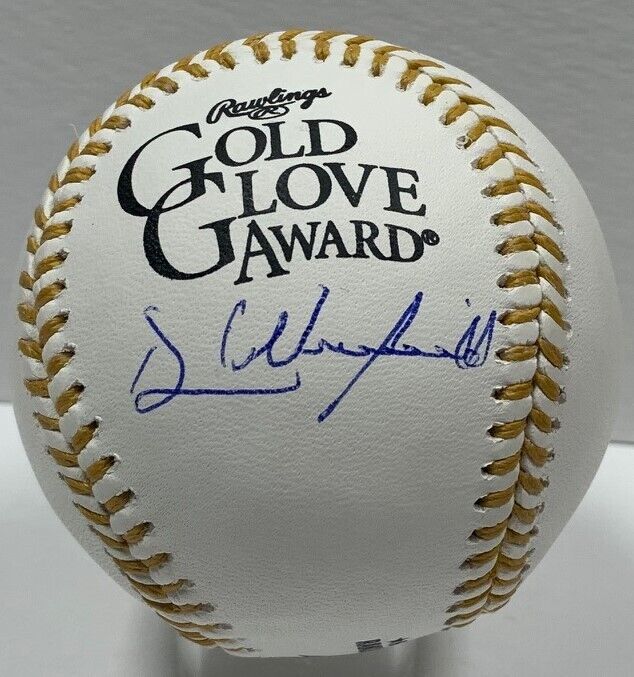 An official MLB Gold Glove LOGO baseball autographed by San Diego Padres Hall of Famer DAVE WINFIELD. Signature is in blue ball point pen. Winfield is a 12 Time All Star, 1992 World Series Champion, 7 x Gold Glover and was inducted into the Hall of Fame in 2001. This would make a great addition to any Blue Jays, Padres or Yankees collection! This item was signed at a public signing, is guaranteed to be 100% authentic and will include a COA from JSA authentication.