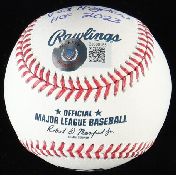 Pat Hughes Signed OML Baseball with Extensive Inscription from 2016 Cubs World Series Final Out Call.Rawlings Official Major League Baseball. Hand-signed and inscribed by Pat Hughes (Sportscaster for the Chicago Cubs).The autograph includes an official Beckett Authentication Services serially numbered hologram for authenticity purposes.Authentication: Beckett Hologram His most Famous call of all time: "A little bouncer slowly toward Bryant. He will glove it and throw to Rizzo. It's in time! And the Chicago Cubs win the World Series!" The Cubs come pouring out of the dugout, jumping up and down like a bunch of delirious 10-year-olds. The Cubs have done it! The longest drought in the history of American sports is over, and the celebration begins!"