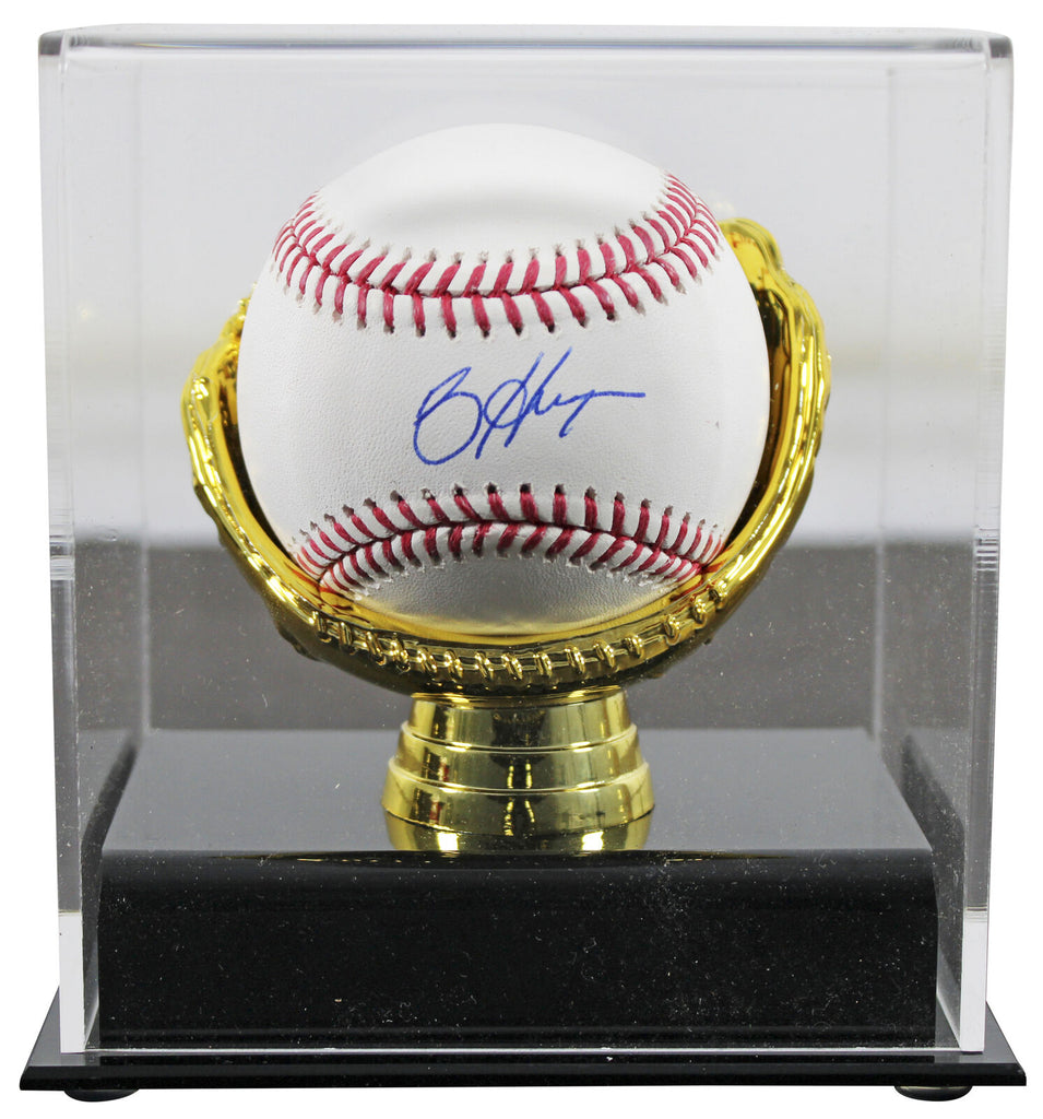 This Autographed OML Baseball Baseball Gold Glove Acrylic Display Case has been Personally Signed by Bryce Harper of the Philladelphia Phillies. This item is 100% Authentic to includes a numbered hologram by Fanatics. We have multiples of this same item. While the photographs are representative of this item, the size, placement and strength of the signature may vary. Each item is hand signed, therefore, each autograph is unique.