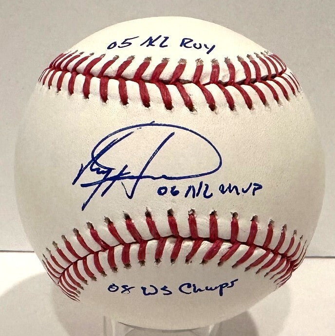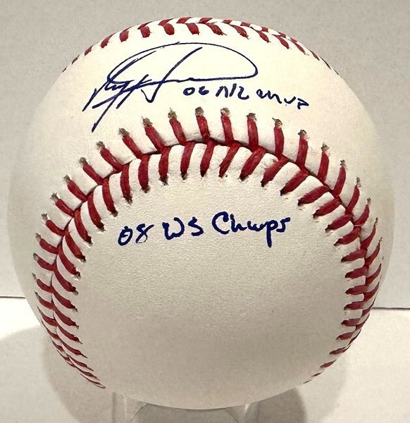 An official Major League baseball autographed by Philadelphia Phillies World Series Champ and Most Valuable Player RYAN HOWARD. Signature is in blue ball point pen with the inscription "05 NL ROY, '06 NL MVP & '08 WS Champ". This would make a great addition to any Phillies collection! his item is guaranteed to be 100% authentic and will include a COA from JSA Authentication.