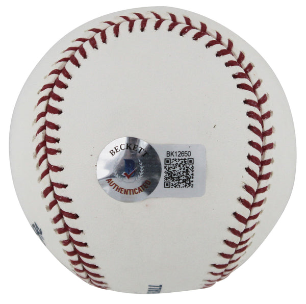 This Autographed Oml Baseball has been Personally Signed by Chris Young of the Texas Rangers. This item is 100% Authentic to include a hologram by Beckett Authentication Services. This item will come with an affixed Beckett Authentication Services (BAS) authentication sticker, which includes a scannable QR code to verify authenticity. Please note that Beckett no longer provides serial-numbered COA cards, and the attached BAS sticker will serve as the complete authentication for this item. The authenticity can be verified on Beckett Authentication Services website.