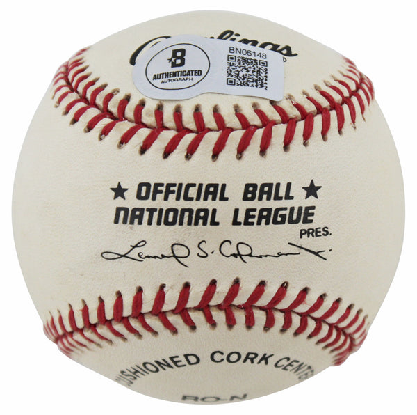 This Autographed Leonard Coleman Onl Baseball has been Personally Signed by Tony Perez of the Cincinnatti Reds. This item is 100% Authentic to include a hologram by Beckett Authentication Services. This item will come with an affixed Beckett Authentication Services (BAS) authentication sticker, which includes a scannable QR code to verify authenticity. Please note that Beckett no longer provides serial-numbered COA cards, and the attached BAS sticker will serve as the complete authentication for this item. The authenticity can be verified on Beckett Authentication Services website.