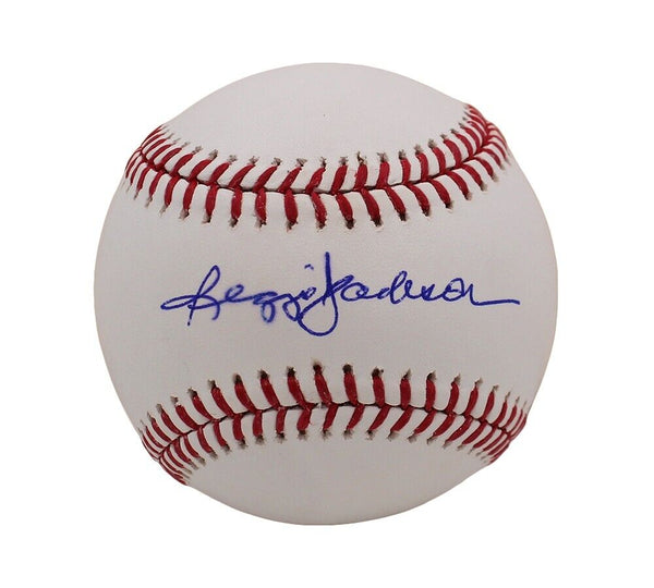 An Oakland Athletics Rawlings Official Major League White MLB Baseball hand signed by Reggie Jackson. The item and signature are in excellent condition. Rickey is a 14x All Star, 5x World Series Champion and 2x Silver Slugger Award Winner. AUTHENTICATION: The item is accompanied by a Beckett Serial Numbered and Databased Hologram