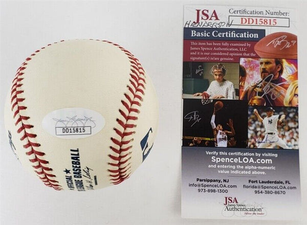 This autographed OML baseball has been personally hand-signed by Rickey Henderson of the Oakland A's. This autograph is certified by James Spence Authentication (JSA). It comes with the numbered hologram and matching Certificate of Authenticity.**Please see all photos regarding the condition of this baseball.