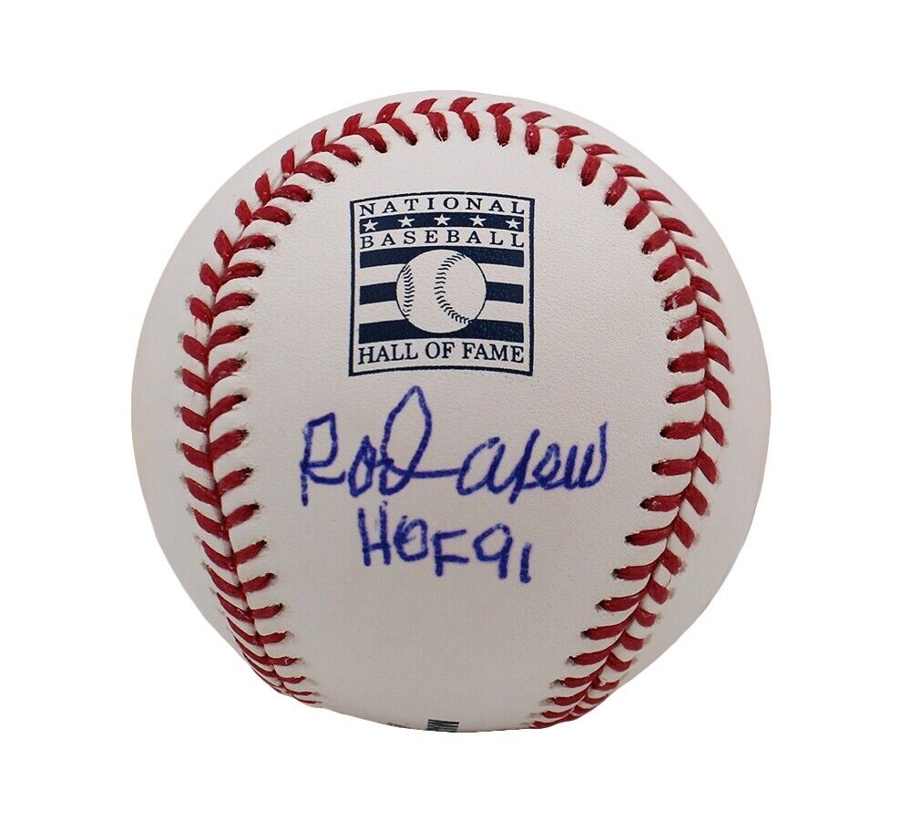 A Los Angeles Angels Rawlings Official Major League Hall of Fame Edition MLB Baseball hand signed by Rod Carew. The item and signature are in excellent condition. In addition to signing his name Rod also inscribed "HOF 91" on the item. AUTHENTICATION: The item is accompanied by a Beckett Serial Numbered and Databased Hologram