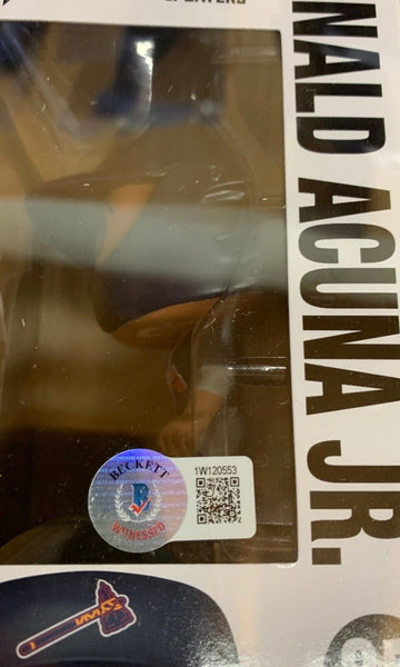 Ronald Acuna Jr has autographed this official pop. Autograph was witnessed and authenticated by Beckett Authentication Services (BAS). Item comes with their unique authenticity sticker # on the item. Simply scan the QR code with your phone to verify on their site. A pop protector is included.Stock image.