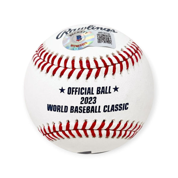 This World Baseball Classic baseball has been personally hand-signed by Ronald Acuna Jr. of the Atlanta Braves100% AuthenticCertificate of authenticity by BeckettExact location of signature may vary