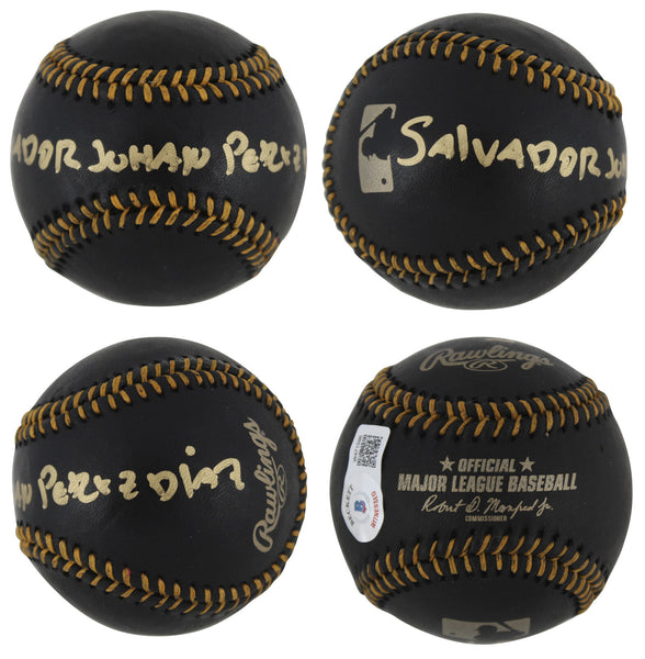 This Autographed Black Oml Baseball has been Personally Signed by Salvador Johan Perez DIaz of the Kansas City Royals. This item is 100% Authentic to include a hologram by Beckett Authentication Services. This item will come with an affixed Beckett Authentication Services (BAS) authentication sticker, which includes a scannable QR code to verify authenticity. Please note that Beckett no longer provides serial-numbered COA cards, and the attached BAS sticker will serve as the complete authentication for this item. This is a BAS Witnessed Protection Program item which means a Beckett Authentication Service representative was present when this item was being signed. We conducted an autograph signing with Salvador Johan Perez DIaz where multiples of the same item were signed. While the photographs are representative of this item, the size, placement and strength of the signature may vary. Each item is hand signed, therefore, each autograph is unique. This item can be verified through BAS Witnessed.