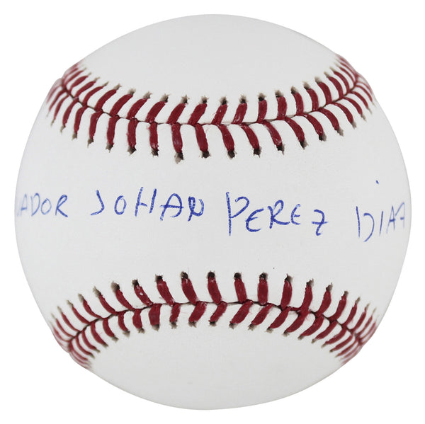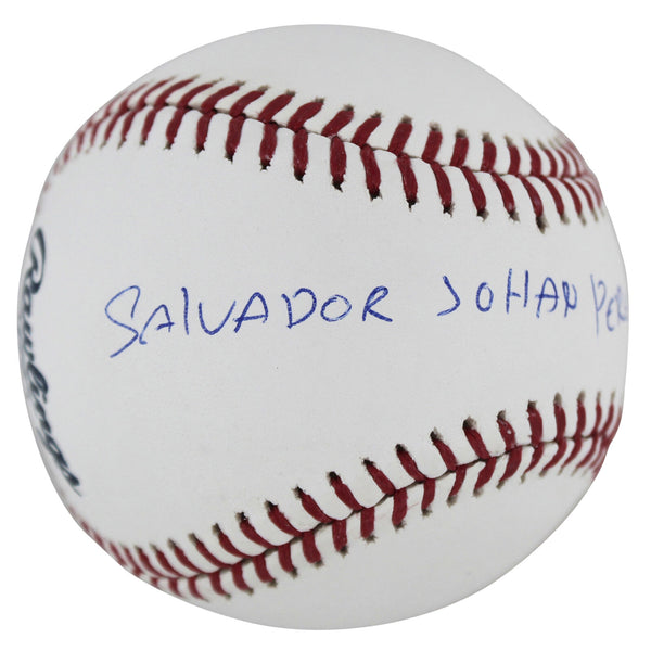 This Autographed OML Baseball Baseball Gold Glove Acrylic Display Case has been Personally Signed by Salvador Johan Perez DIaz of the Kansas City Royals. This item is 100% Authentic to include a hologram by Beckett Authentication Services. This item will come with an affixed Beckett Authentication Services (BAS) authentication sticker, which includes a scannable QR code to verify authenticity. Please note that Beckett no longer provides serial-numbered COA cards, and the attached BAS sticker will serve as the complete authentication for this item. This is a BAS Witnessed Protection Program item which means a Beckett Authentication Service representative was present when this item was being signed. We conducted an autograph signing with Salvador Johan Perez DIaz where multiples of the same item were signed. While the photographs are representative of this item, the size, placement and strength of the signature may vary. Each item is hand signed, therefore, each autograph is unique. This item can be verified through BAS Witnessed.