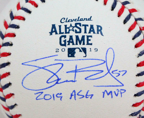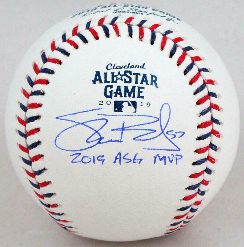 Shane Bieber Autographed Rawlings ASG Baseball w/ MVP- Beckett W Holo *Blue This is a Shane Bieber hand autographed Rawlings Official Major League All Star Baseball inscribed 2019 ASG MVP. This item has a Beckett Witnessed Authentication, which comes with a numbered hologram and a generic Beckett Certificate of Authenticity. You can view this item on the Beckett Authentication website. It was signed either at a public autograph appearance or a private signing. This is a stock photo of the item. Although you may not receive this exact item, the item you receive is virtually identical, brand new, and in great shape.