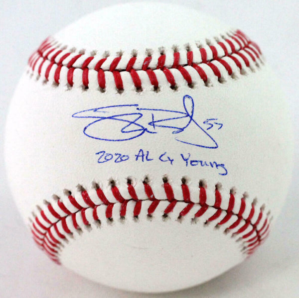 Shane Bieber Autographed Rawlings OML Baseball w/ Insc - Beckett W Auth *Blue This is a Shane Bieber hand autographed Rawlings Official Major League Baseball inscribed with 2020 AL CY Young. This item has a Beckett Witnessed Authentication, which comes with a numbered and a matching Beckett Certificate of Authenticity. You can view this item on the Beckett Authentication website. It was signed either at a public autograph appearance or a private signing. This is a stock photo of the item. Although you may not receive this exact item, the item you receive is virtually identical, brand new, and in great shape.