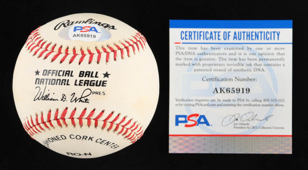 Rawlings Official National League baseball. Hand-signed by Steve Garvey (Los Angeles Dodgers). Please note, baseball is naturally toned.The lot / autograph(s) includes an official PSA/DNA hologram and matching COA for authenticity purposes.Authentication: PSA COA