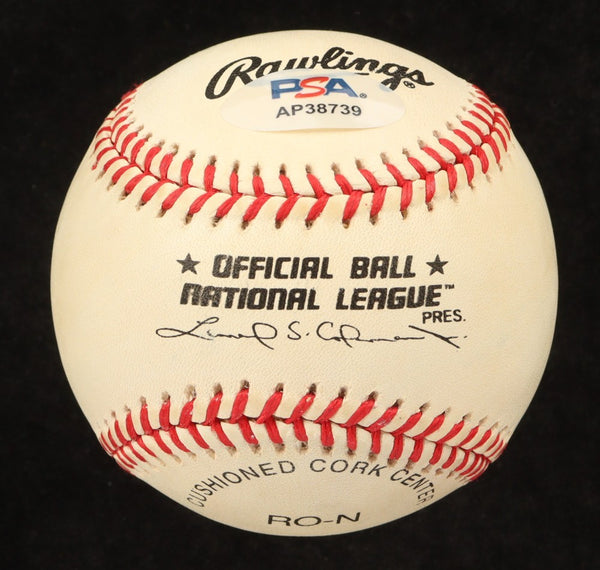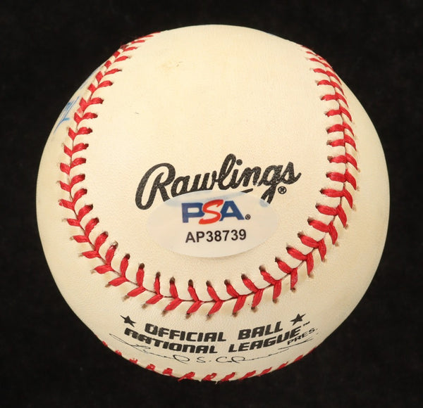 Rawlings Official National League Baseball. Hand-signed by Ralph Branca (D. 2016, Brooklyn Dodgers) and Bobby Thomson (D. 2010, New York Giants). The display case is included as shown. Please note, the baseball is naturally toned.The autograph(s) includes an official PSA/DNA hologram and QR Code card for authenticity purposes.Authentication: PSA Hologram and QR Code cardRalph Branca and Bobby Thomson are forever linked in baseball history due to "The Shot Heard 'Round the World," a game-winning home run hit by Thomson against Branca in the 1951 National League pennant playoff. The home run, which secured the pennant for the New York Giants over the Brooklyn Dodgers, has been the subject of much debate and scrutiny regarding potential sign-stealing by the Giants.