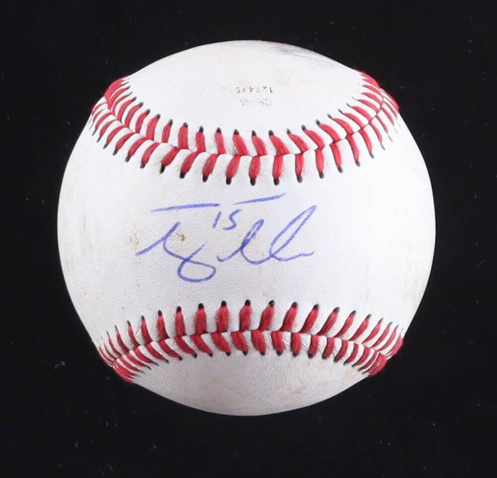 Rawlings Official League baseball. Hand-signed by Tim Tebow (Florida Gators, Denver Broncos, New York Mets).The baseball comes from the signer's personal collection and shows use-associated scuffing throughout.The autograph includes an official Beckett Authentication Services serially numbered hologram and QR Code card for authenticity purposes.Authentication: Beckett Hologram with QR Code card