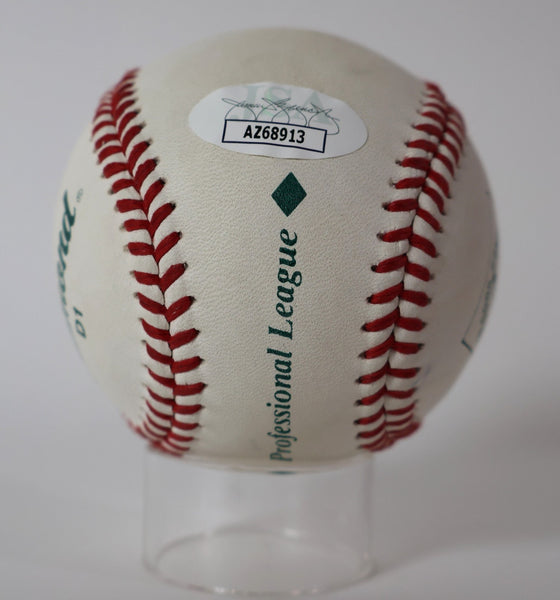 Own a Piece of Baseball History This authentic Tommy John autographed Diamond D1 Professional League Baseball represents more than just a signature--it's a connection to one of baseball's most influential figures. The legendary pitcher who revolutionized the sport both on the mound and in medical history. About Tommy John 288 Career Wins - One of the most successful left-handed pitchers in MLB history 4-Time All-Star - Recognized among baseball's elite during his 26-year career Medical Pioneer - The groundbreaking elbow surgery that bears his name has saved countless careers Yankees & Dodgers Legend - Starred for multiple franchises including the New York Yankees and Los Angeles Dodgers Authentication & Quality Each baseball comes with a JSA (James Spence Authentication) Certificate of Authenticity, ensuring you're receiving a genuine Tommy John signature. JSA is one of the most trusted names in sports memorabilia authentication. The signature is boldly displayed on an official Diamond D1 Professional League Baseball, the same quality ball used in professional play. Perfect For Serious baseball memorabilia collectors Yankees or Dodgers fans Medical professionals and sports medicine enthusiasts Investment-grade sports collectibles Unique gift for the baseball historian This is more than memorabilia--it's a conversation piece that bridges baseball excellence and medical innovation.
