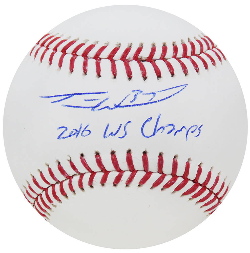 Travis Wood signed Rawlings official MLB baseball with '2016 WS Champs' inscription. Item comes with a Schwartz Sports Memorabilia tamper-proof numbered hologram and Certificate of Authenticity which can be verified online.