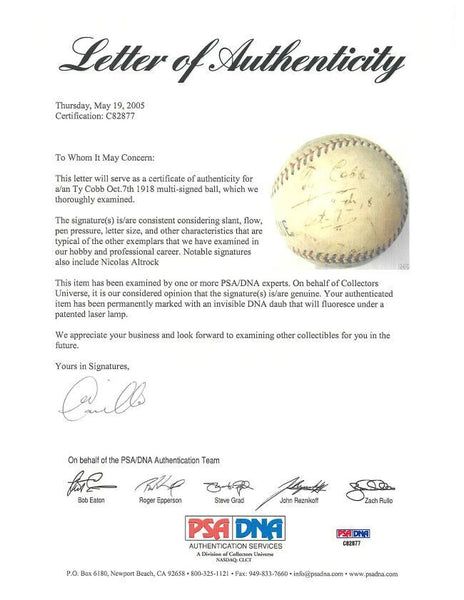 Ty Cobb Detroit Tigers Signed Victor League Baseball Oct 7th 18 BAS+PSA LOA