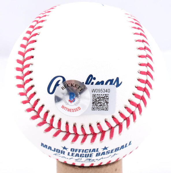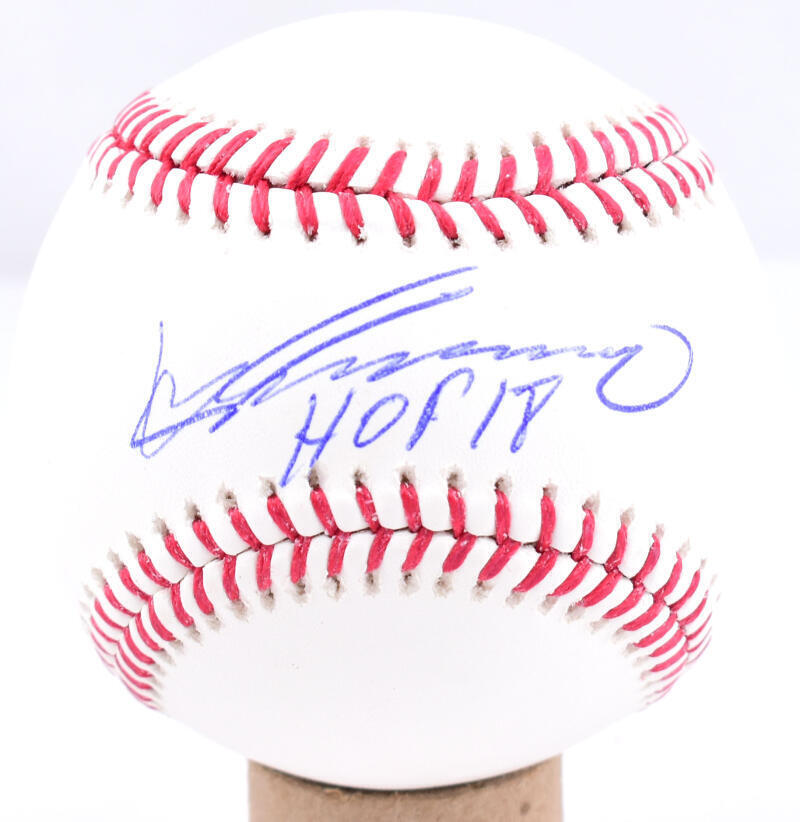 Vladimir Guerrero Sr. Autographed Rawlings OML Baseball w/ HOF 18 - Beckett W Hologram *Blue This is a Vladimir Guerrero Sr. hand autographed Rawlings Official Game Ball Major League Baseball inscribed with HOF 18. This item has a Beckett Witnessed Authentication, which comes with a Beckett numbered sticker hologram and a QR code for verification. You can view this item on the Beckett website. It was signed either at a public autograph appearance or a private signing. This is a stock photo of the item. Although you may not receive this exact item, the item you receive is virtually identical, brand new, and in great shape.
