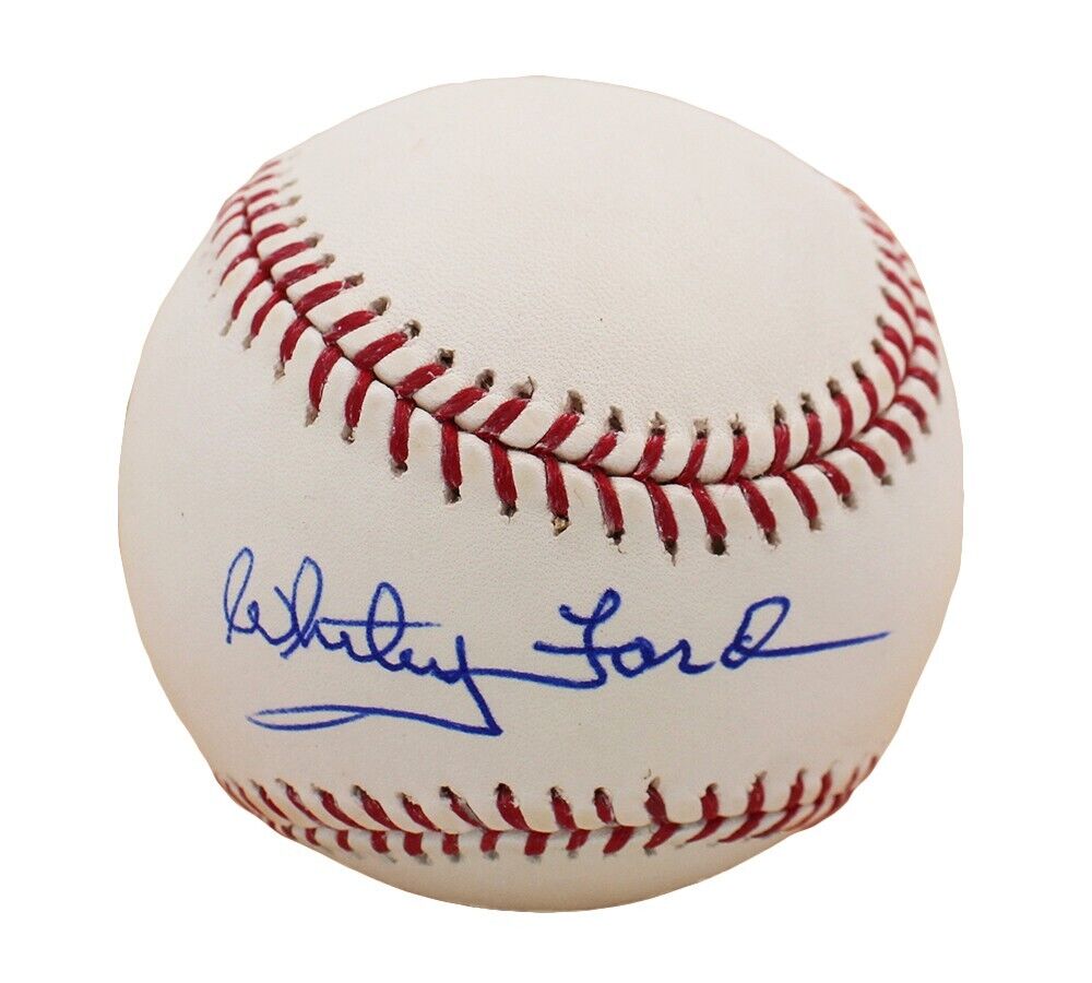 A New York Yankees Rawlings Official Major League MLB Baseball hand signed by Whitey Ford. The item and signature are in excellent condition. Whitey is a former professional baseball pitcher. He is a 6x World Series champion, World Series MVP and a CY Award Winner. AUTHENTICATION: The item is accompanied by a Fanatics Authentic Serial Numbered and Databased Hologram