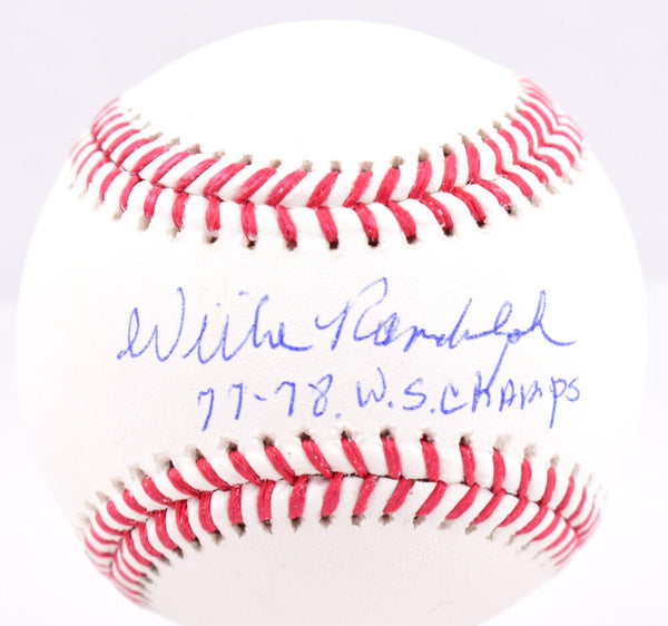 Willie Randolph Autographed Rawlings OML Baseball w/77,78 WS Champs- Beckett W Hologram *Blue This is a Willie Randolph hand autographed Rawlings Official Major League Baseball. Inscribed 77,78 WS Champs. This item has a Beckett Witnessed Authentication, which comes with a numbered sticker hologram and a QR code for verification. You can view this item on the Beckett website and it shows when and where the item was signed. It was signed either at a public autograph appearance or a private signing. This is a stock photo of the item. Although you may not receive this exact item, the item you receive is virtually identical, brand new, and in great shape.