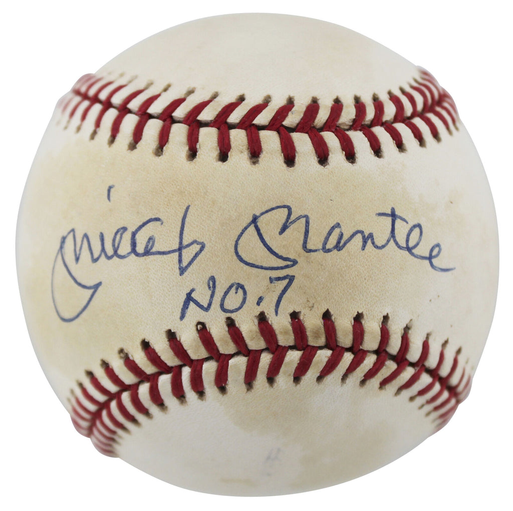 This Autographed Baseball with the inscription of "No. 7" has been Personally Signed by Mickey Mantle of the New York Yankees. This item is 100% Authentic to include a Certificate of Authenticity (COA) / hologram by Beckett Authentication Services. The authenticity can be verified on Beckett Authentication Services website. The signature is also authenticated by Upper Deck, hologram #UDD16761, it does not come with the matching numbered COA.