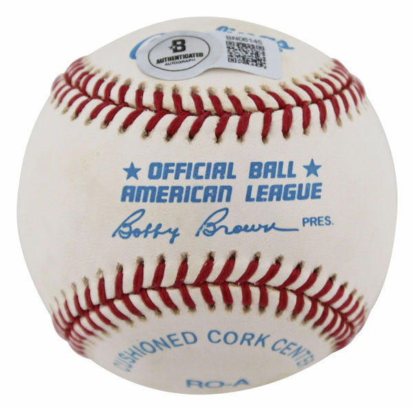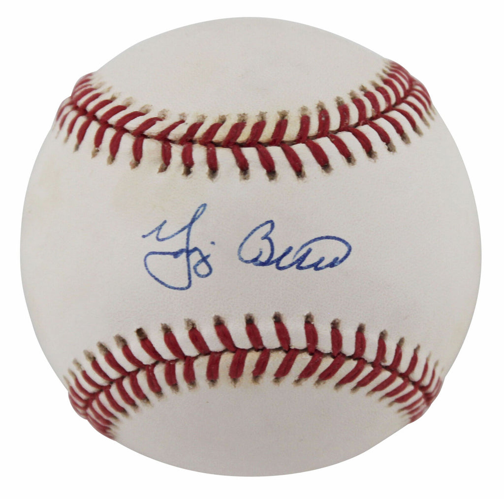This Autographed Bobby Brown Oal Baseball has been Personally Signed by Yogi Berra of the New York Yankees. This item is 100% Authentic to include a hologram by Beckett Authentication Services. This item will come with an affixed Beckett Authentication Services (BAS) authentication sticker, which includes a scannable QR code to verify authenticity. Please note that Beckett no longer provides serial-numbered COA cards, and the attached BAS sticker will serve as the complete authentication for this item. The authenticity can be verified on Beckett Authentication Services website.