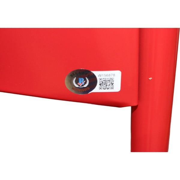 Bobby Knight Autographed/Signed Indiana Hoosiers Red Folding Chair BAS 40959 The number in the listing title is just an inventory sku for our records and is not the authentication number. This is a authentic full size red metal folding chair that was personally autographed by Bobby Knight. Chairs are metal and came to us in a pack of four, due to the packaging from the distributor the chairs may have some small scuffs and scratches. Includes a certificate of authenticity from Beckett Authentication Services (BAS) and Denver Autographs.