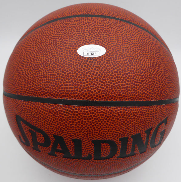 This is a Spalding I /O Basketball that has been hand signed by Elgin Baylor. This item has been certified authentic by JSA and comes with their tamper-proof sticker and matching certificate of authenticity.