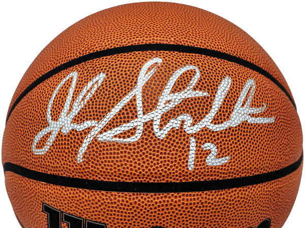 This is an Authentic Series Indoor/Outdoor IO Basketball that has been hand signed by John Stockton. This item has been witnessed and certified authentic by Beckett Authentication (BAS) and comes with their tamper-proof witness sticker.