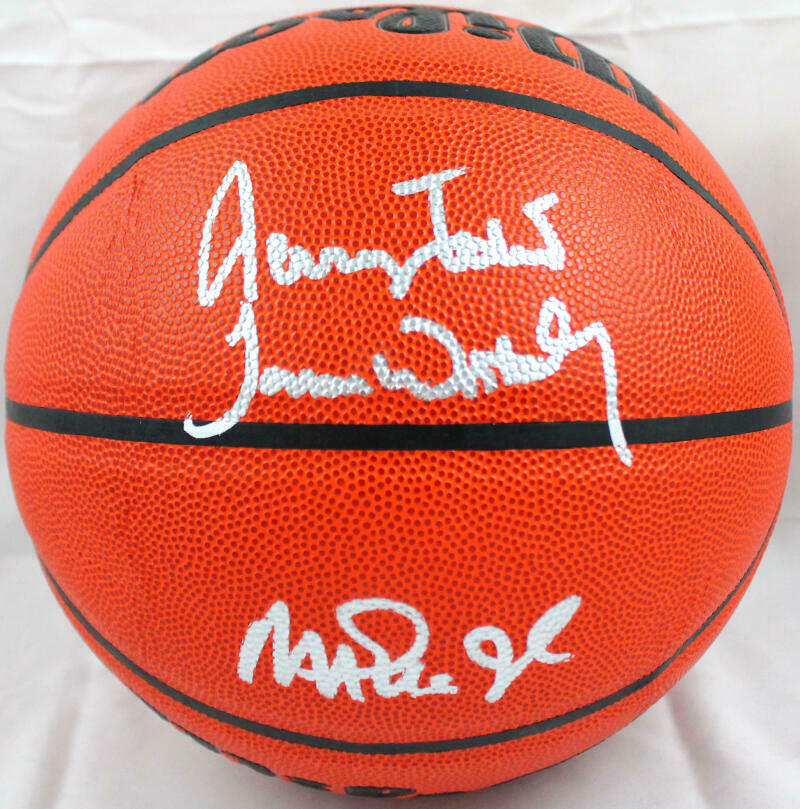 Magic Johnson/James Worthy/Jerry West Autographed Official NBA Wilson Basketball-Beckett W Hologram *Silver This is a hand autograph of Magic Johnson/James Worthy/Jerry West on an Official NBA Wilson Game Ball Series Basketball. This item has a Beckett Witnessed Authentication, which comes with a Beckett numbered hologram and a QR code for verification. It was signed either at a public autograph appearance or a private signing. This is a stock photo of the item. Although you may not receive this exact item, the item you receive is virtually identical and brand new in great shape.