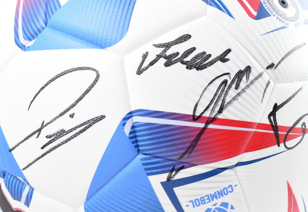 This is a hand autograph of 2024 Brazil National Team players Marquinhos/Pepe/Lucas Paqueta/ Gabriel Martinelli/ Ederson/ Gabriel Magalhaes on an Puma Soccer Ball. This item has a James Spence Authentication, which comes with a JSA numbered hologram and a JSA Letter COA. It was signed either at a public autograph appearance or a private signing. This is a stock photo of the item. Although you may not receive this exact item, the item you receive is virtually identical and brand new in great shape. This is a hand autograph of 2024 Brazil National Team players Marquinhos/Pepe/Lucas Paqueta/ Gabriel Martinelli/ Ederson/ Gabriel Magalhaes on an Puma Soccer Ball. This item has a James Spence Authentication, which comes with a JSA numbered hologram and a JSA Letter COA. It was signed either at a public autograph appearance or a private signing. This is a stock photo of the item. Although you may not receive this exact item, the item you receive is virtually identical and brand new in great shape.