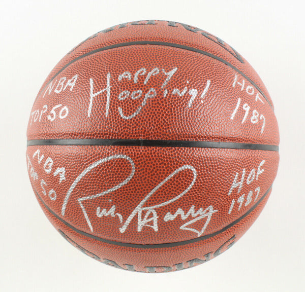 Spalding NBA Indoor/Outdoor Ultimate Basketball has been hand-signed and inscribed by Rick Barry (San Francisco & Golden State Warriors, Oakland Oaks, New York Nets, Houston Rockets, HOF). The lot / autograph(s) includes an official Beckett Authentication Services serially-numbered hologram and matching COA for authenticity purposes.Authentication: Beckett COA
