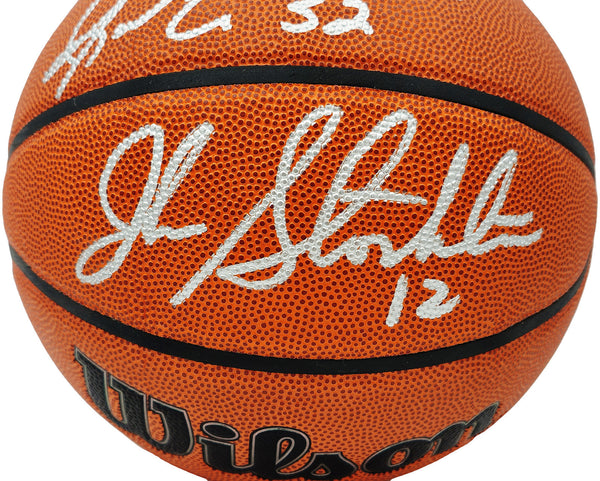 This is an Authentic Series Indoor/Outdoor IO Basketball that has been hand signed by John Stockton & Karl Malone. This item has been witnessed and certified authentic by Beckett Authentication (BAS) and comes with their tamper-proof witness hologram.