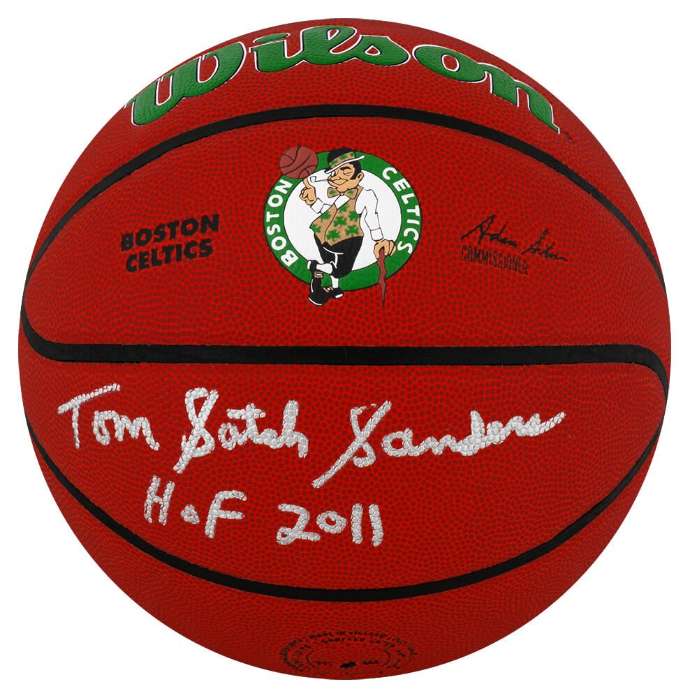 Tom Sanders signed Boston Celtics logo Wilson NBA basketball with 'Satch' and 'HOF 2011' inscriptions. Item comes with a Schwartz Sports Memorabilia tamper-proof numbered hologram and Certificate of Authenticity which can be verified online.