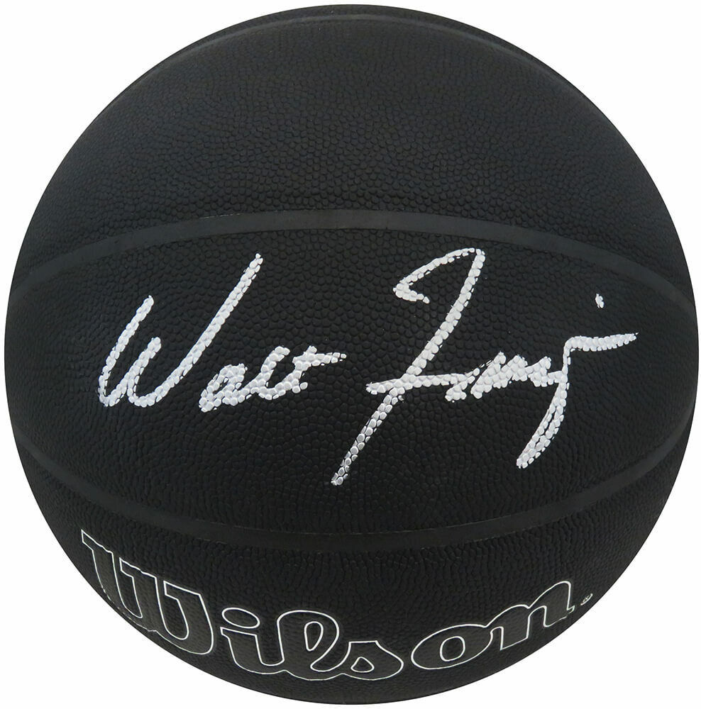 Walt Frazier signed Wilson 75th Anniversary logo black NBA basketball. Item comes with a Schwartz Sports Memorabilia tamper-proof numbered hologram and Certificate of Authenticity which can be verified online.